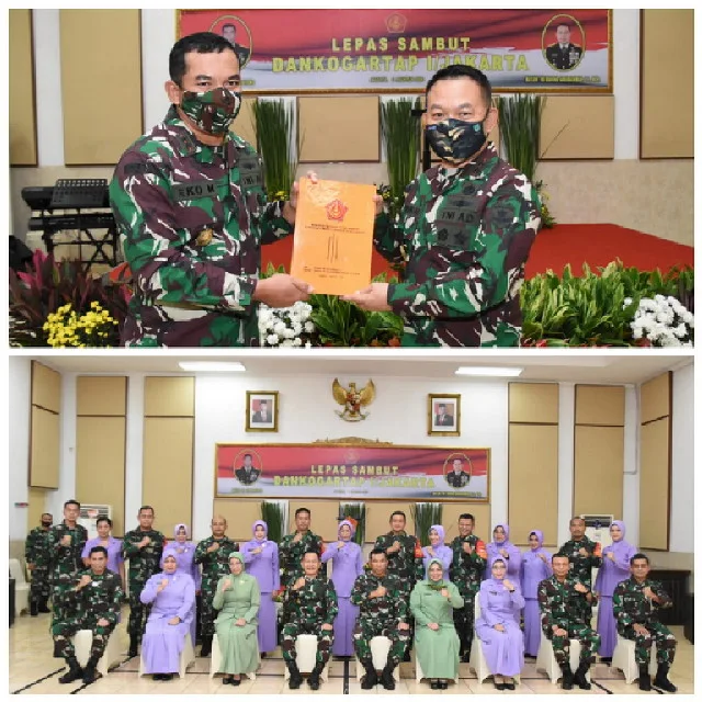 Setelah Upacara Sertijab Pangkostrad Mayjen TNI Eko Margiyono dan Pangdam Jaya Mayjen TNI Dudung Abdurachman beserta Istri melaksakan sertijab Komandan Garnisun Tetap-1 (Dangartap-1/Jakarta).(Rosidi)
