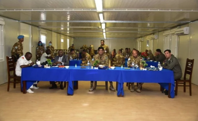 Kedatangan rombongan kunjungan kerja Brigadir Jenderal Mohammad Atif Mujtaba yang didampingi oleh Rear Admiral Ruvunangiza-Marie Commander of the 22nd Naval Group dan Head of Officer (HoO) Jacob Mogeni beserta staf, disambut hangat oleh Komandan Satgas (Dansatgas) TNI Konga XXXIX-B RDB/MONUSCO Kolonel Inf Daniel Lumbanraja dan Wadan Satgas Mayor Inf Yossy S.B. beserta perwira staf dalam suatu upacara jajar kehormatan oleh prajurit Satgas.
